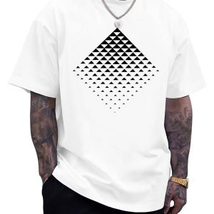 Mens Graphic T-Shirts Triangle Geometric Gradient Art Short Sleeve Summer Top Crewneck Casual Tees for Men White