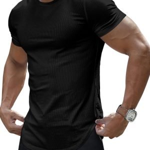 Men’s Muscle Fit Short Sleeve T-Shirt – Slim Fitted Crew Neck Longline Tee for Gym & Workout