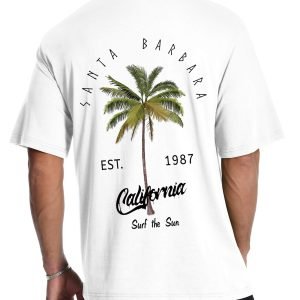 Men’s Graphic T-Shirt – Palm Tree Print Short Sleeve Summer Crewneck Cotton Casual Tee