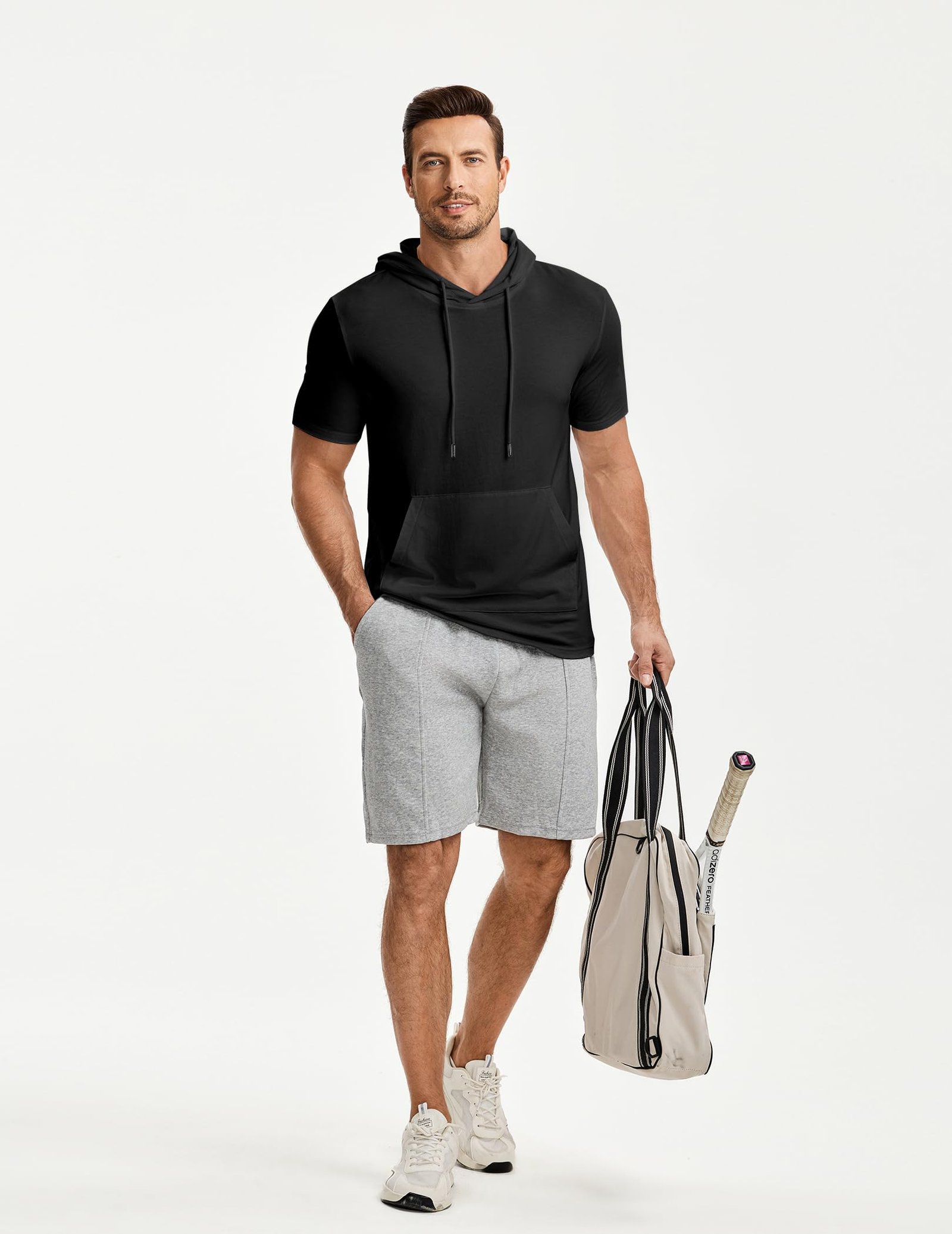 Men’s Short Sleeve Hoodie – Lightweight Cotton Hooded T-Shirt with Pocket