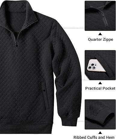 Soft Fabric: Made from high-quality, soft, and anti-pilling fabric, this quarter-zip pullover keeps you warm and cozy. Skin-friendly and durable, it’s perfect for colder seasons.