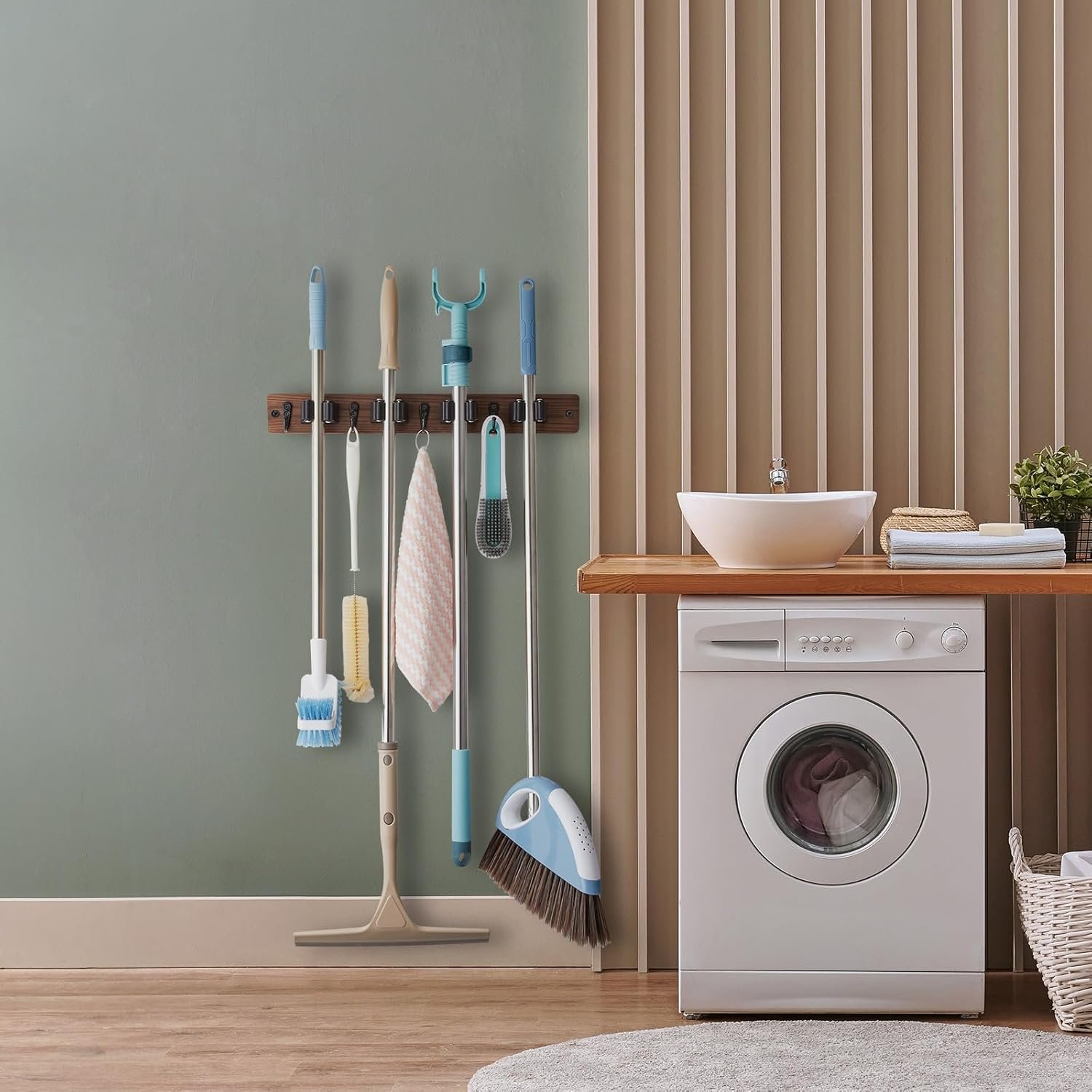 Mop and Broom Holder Wall Mount – Rustic Wood Wall Organizer