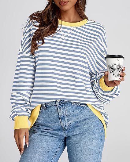 Be the first to review “Women’s Oversized Striped Sweatshirt – Crewneck Long Sleeve Pullover”