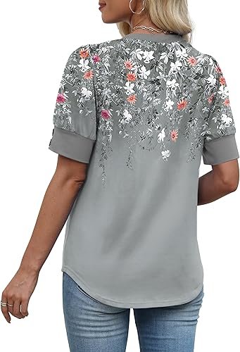 Womens Tops Short Sleeve Shirts Buttons V Neck Spring Fashion Summer Outfits Plus Size Blouses Dressy Casual