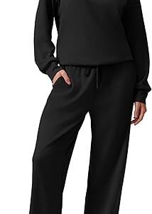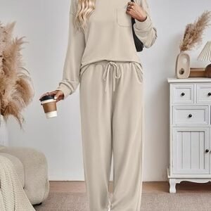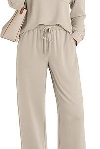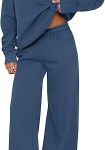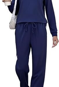 Women’s 2-Piece Lounge Sweatsuit – Long Sleeve Pullover & Wide Leg Pants Set