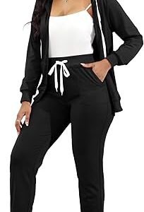 Women’s 2Piece Tracksuit Set – ZipUp Sweatshirt & Jogger Sweatpants Outfit