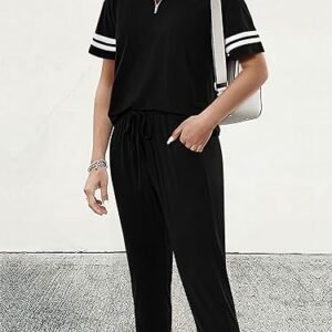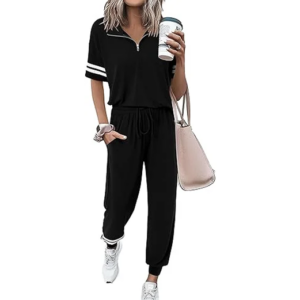 Women’s 2-Piece Summer Tracksuit – Quarter-Zip Short Sleeve Top & Jogger Pants