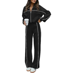 Women’s 2-Piece Half-Zip Tracksuit – Long Sleeve Pullover & Jogger Pants Set